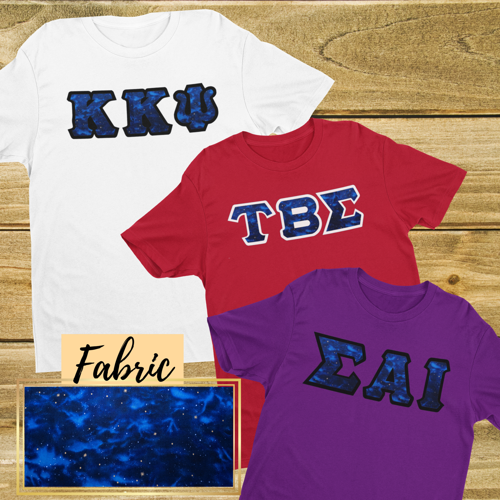 Galaxy with Gold Stars Fabric | Double Stitch Greek letters