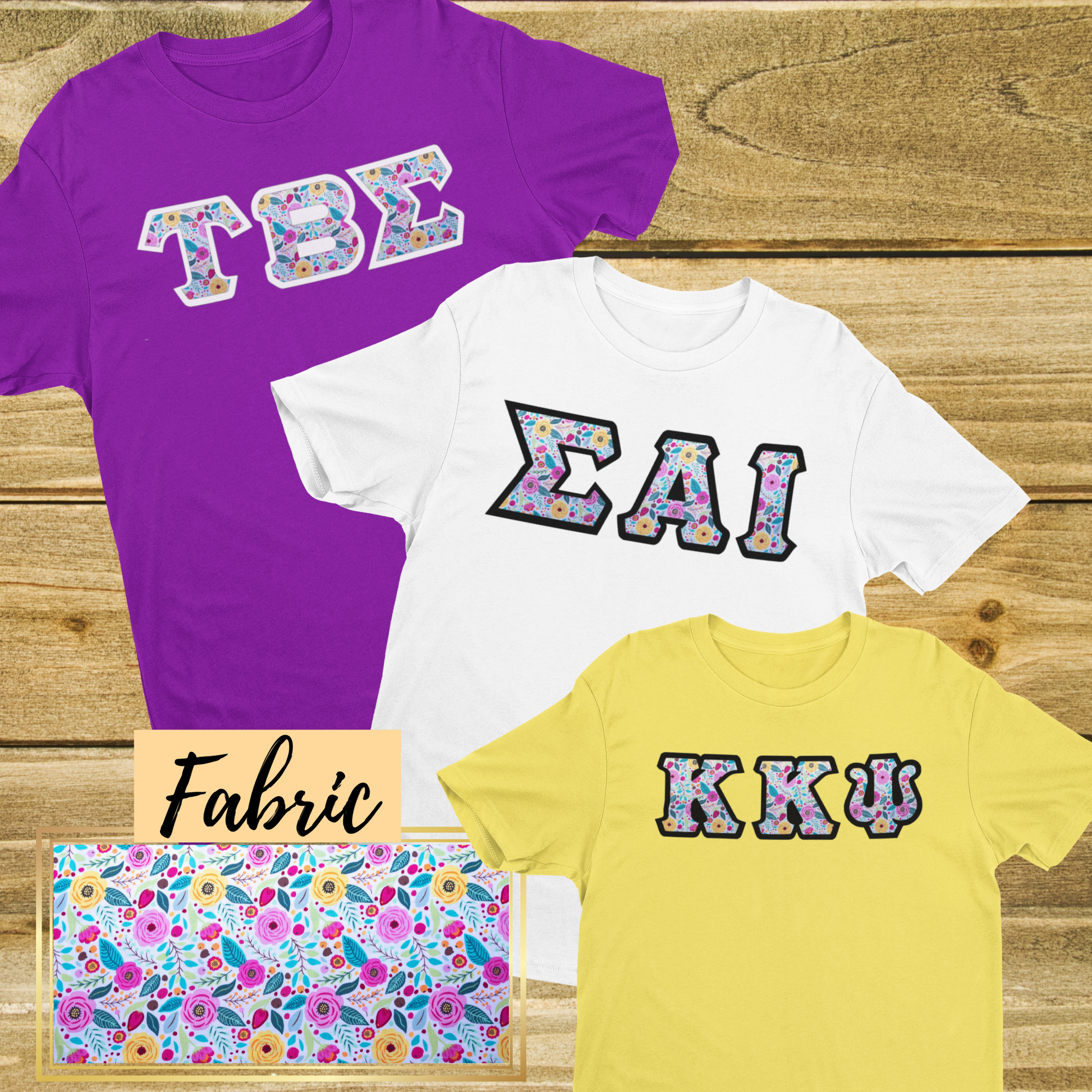 Pink-Yellow Flowers Fabric | Double Stitch Greek letters