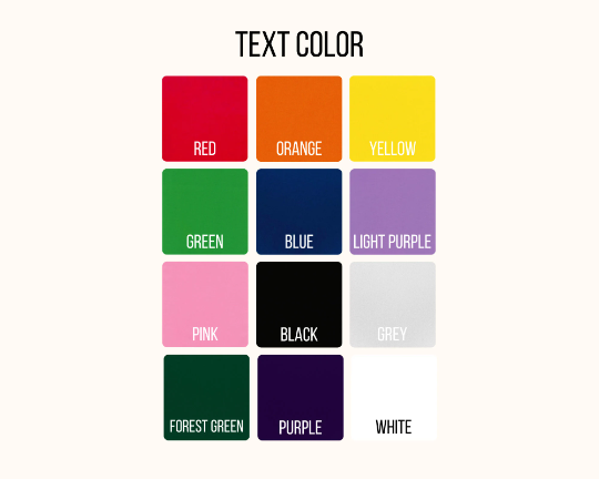 Custom Info in CART NOTES: Font Color, Organization, Name, and or Year of establishment. (Example from Picture: White font, Sigma Alpha Iota, and Madison.)